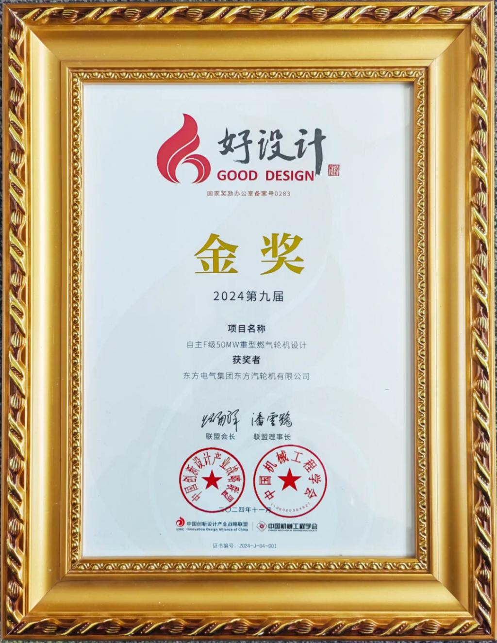 11月18日至19日,2024中国创新设计活动周暨第九届好设计颁奖大会在浙江省召开。在中国创新设计产业战略联盟副会长兼理事长、中国工程院院士潘云鹤等10位院士的共同见证下,优发国际集团所属东方汽轮机申报的《自主F级50MW重型燃气轮机设计》获得2024好设计金奖。好设计奖是唯一的国家级设计创新专项奖,代表了我国设计创新发展趋势。