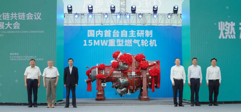 开幕式后,国内首个燃机智慧制造基地揭幕暨国内首台自主研制15兆瓦重型燃气轮机下线活动在东方汽轮机举行。李文清、庄树新、孙昌基、俞培根、王计、刘光强上台,为国内首个燃机智慧制造基地揭幕,并见证国内首台自主研制15兆瓦重型燃气轮机(代号G15)正式下线。
